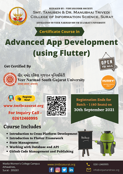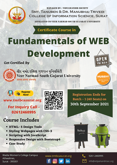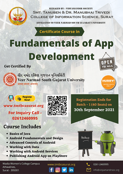 Welcome to Smt. Tanuben & Dr. Manubhai Trivedi College of Information Science, Wadia Women Campus, Athwalines, Surat, 395001