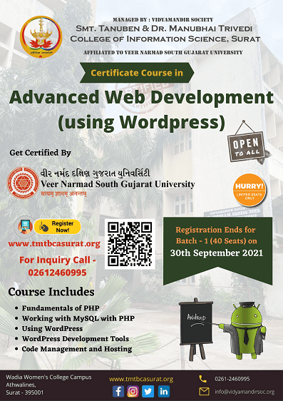 Welcome to Smt. Tanuben & Dr. Manubhai Trivedi College of Information Science, Wadia Women Campus, Athwalines, Surat, 395001